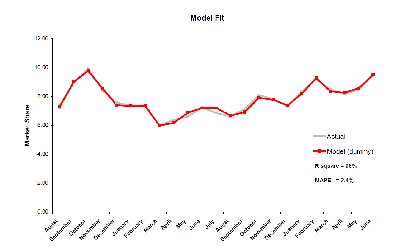 This report presents a description and a complete example of the modeling process required to build a comprehensive market response model that would account for the impact of marketing efforts on sales.